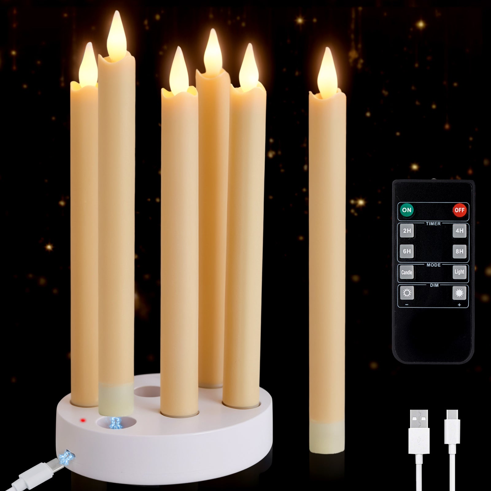 Value Packed & Gift, Ready Packaging: What you’ll get: 6 rechargeable candle lights, 1 charging station, 1 Type - C cable, 1 remote control, and 1 color box. All neatly packed, perfect for gifting to candle - lovers. A complete set for immediate use and sharing the candlelight joy.