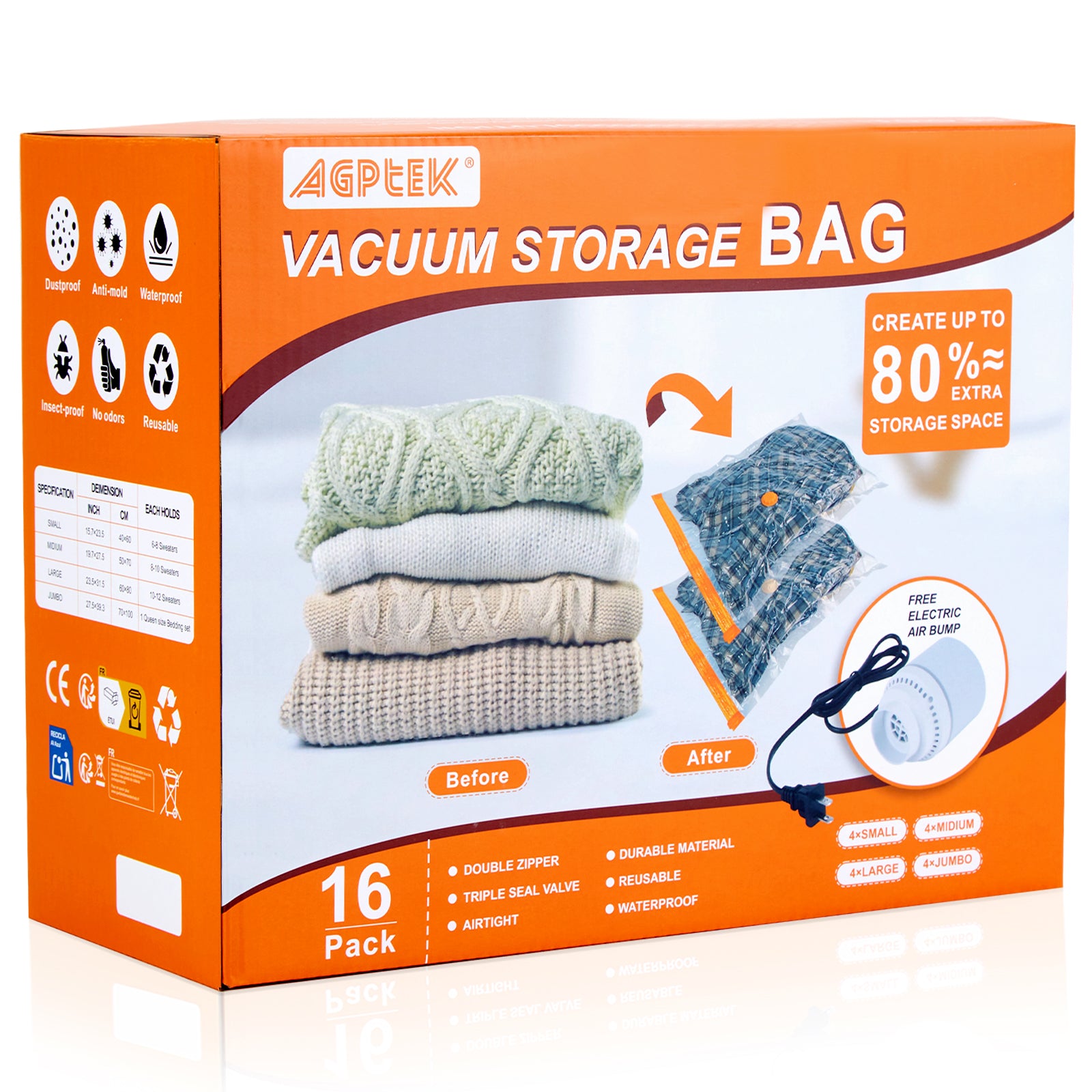Easy to Use: Our vacuum bags are compatible with standard vacuum cleaners, electric pumps, or the included hand pump. Simply put the items in our storage vacuum bag, seal the zipper, suck out the air, close the lid, and store in the palce you want.