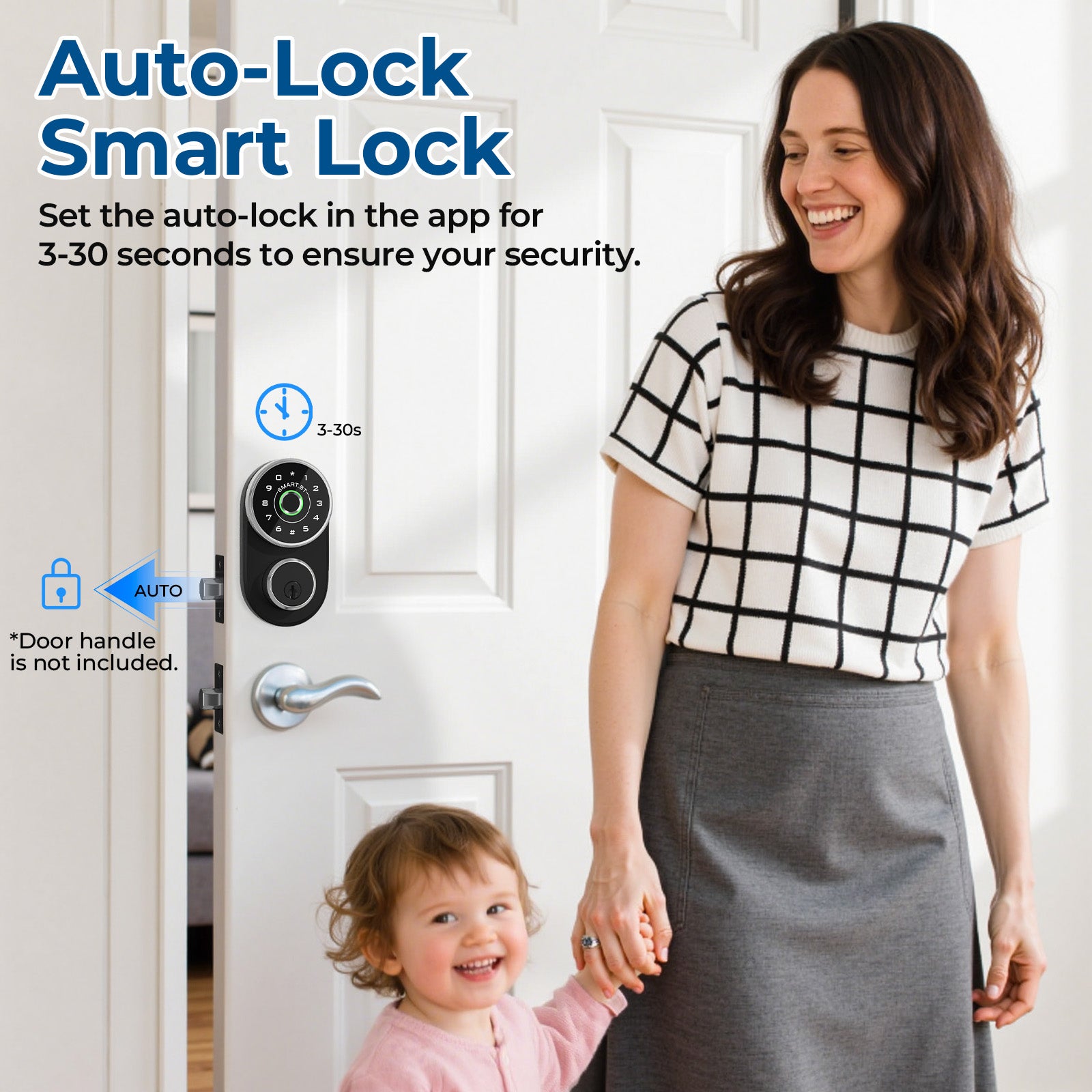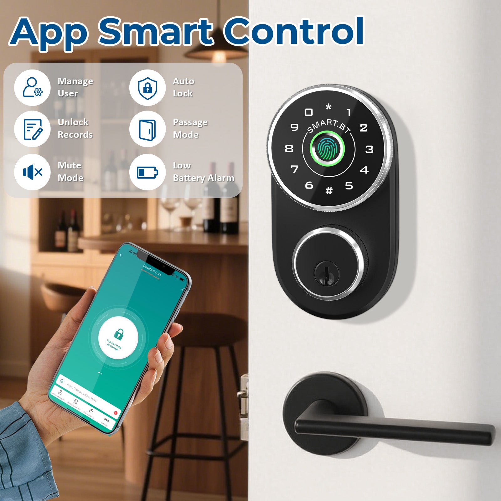 FITNATE Fingerprint Door Knob supports 4-in-1 smart unlocking: fingerprint, passcode, a Tuya-compatible smartphone app, and a traditional key. Switch between methods to meet different usage scenarios, ensuring flexible, efficient, and secure access.
