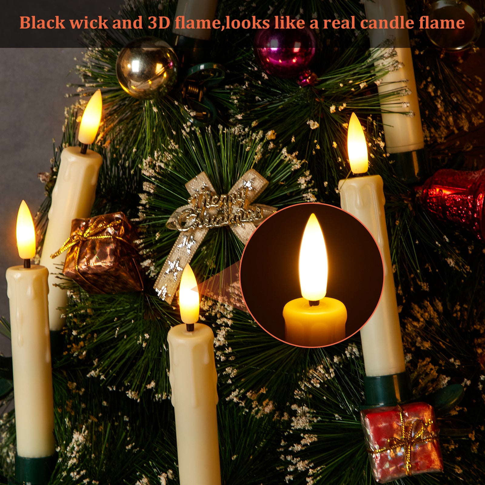 Realistic 3D Flame Effect: Experience the authentic look of real candle flames with our 3D wick design. The candles feature a visible black core and a three-dimensional flame, offering a lifelike flickering effect from every angle.