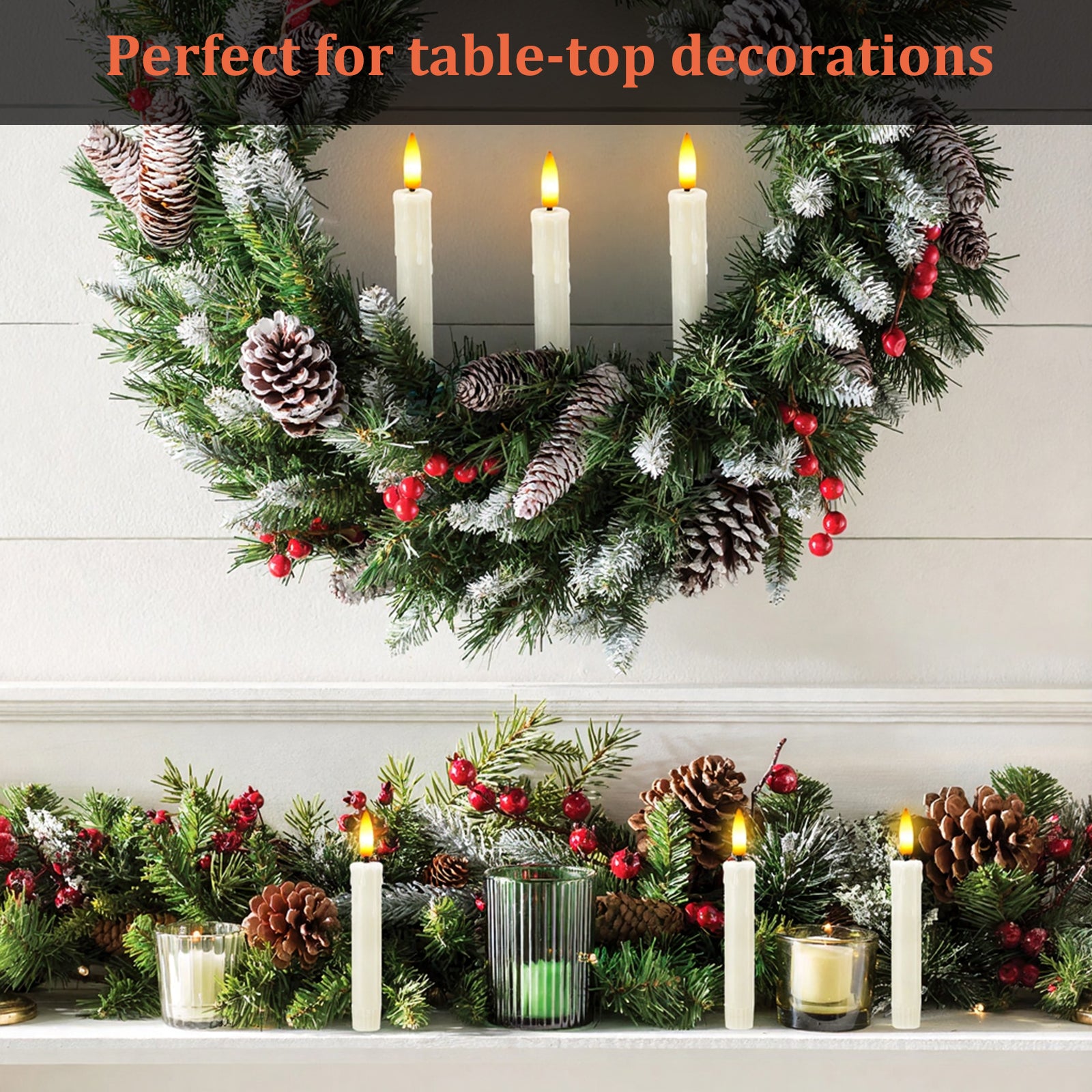 Versatile Clip-on Feature: Equipped with detachable clips, these candles can be securely fastened to branches, garlands, wreaths, and other decorative pieces. When a flat surface like a windowsill or tabletop is needed, simply remove the clips for a seamless transition between various decorating scenarios.