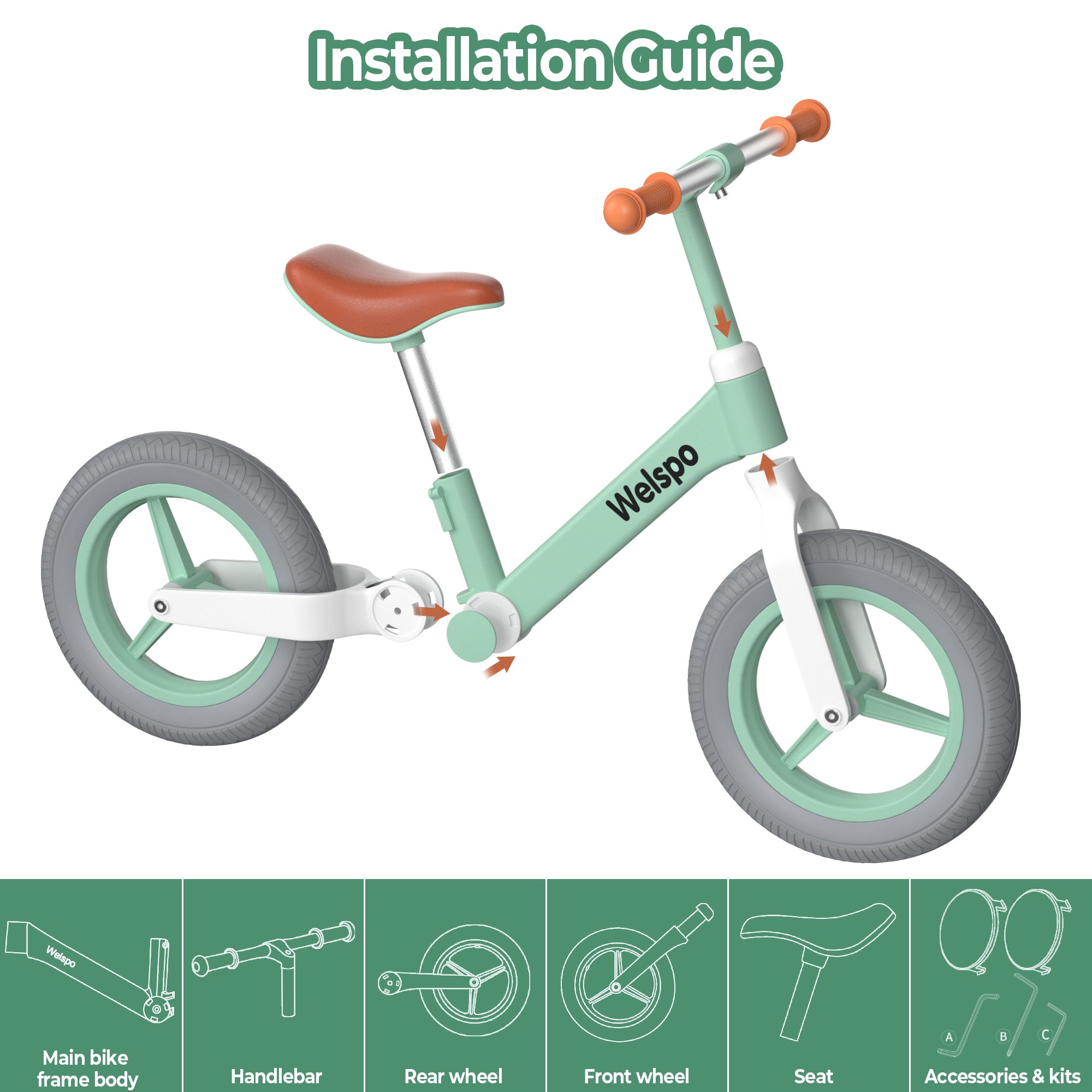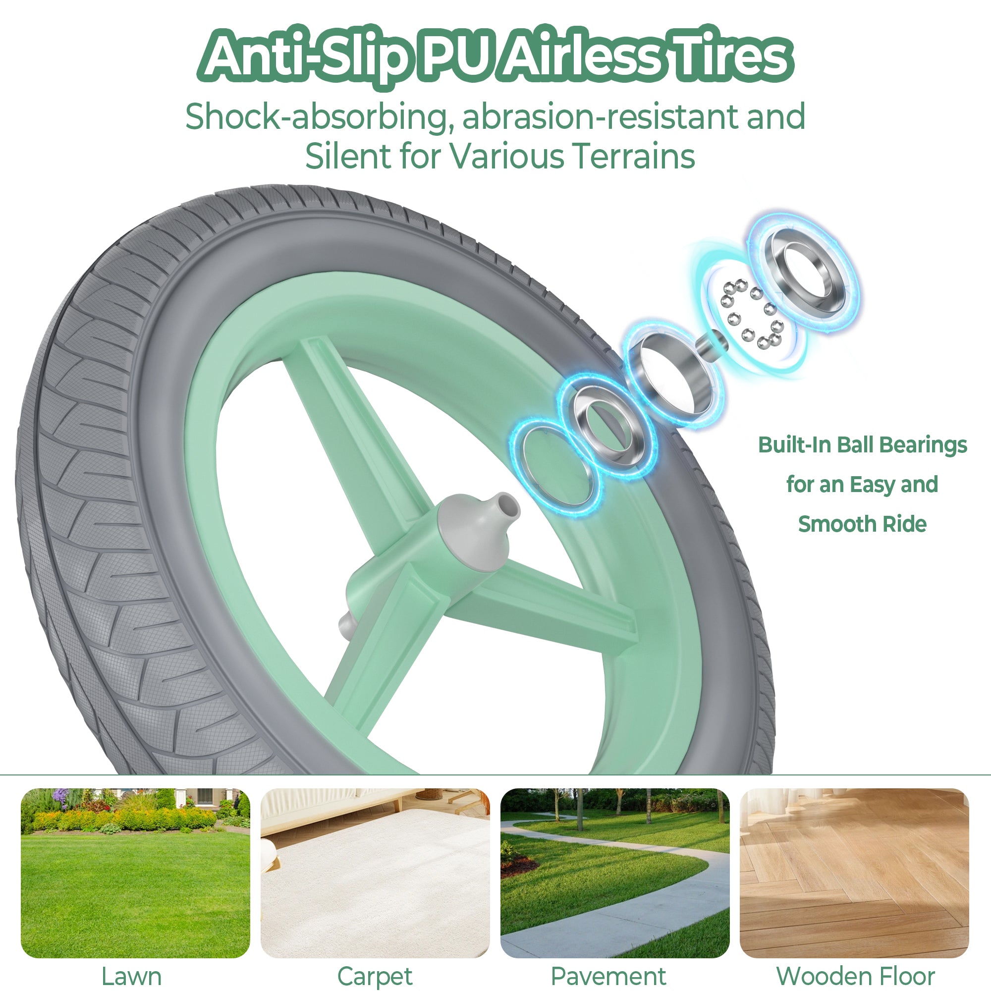 NO-INFLATION PU TIRES: The 12-inch tires require no inflation, providing a shock-absorbing and wear-resistant surface that accounts for 40% of the bike's total weight. This feature enhances traction and stability indoors and outdoors, ensuring a high level of safety for young riders.