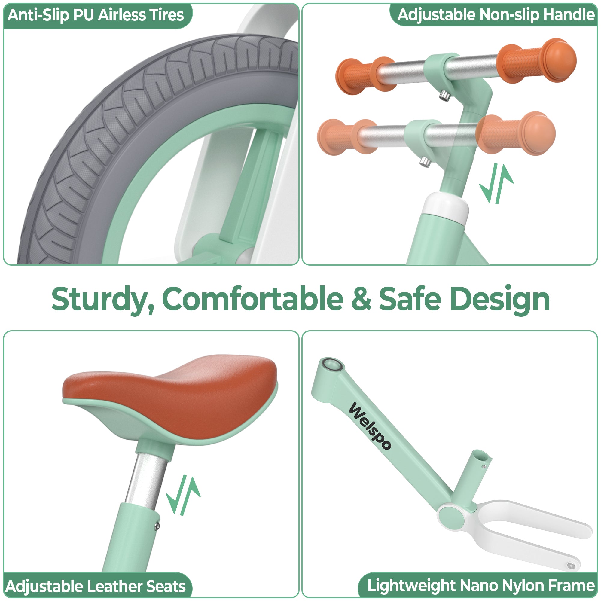 STURDY & COMFORTABLE DESIGN: Our balance bike features a robust yet lightweight nano nylon frame, ensuring durability, rust resistance, and the ability to withstand weights of up to 50 kg/110 lbs. With an ergonomic saddle and a 270° safety-limited handlebar, it provides a comfortable and secure riding experience.