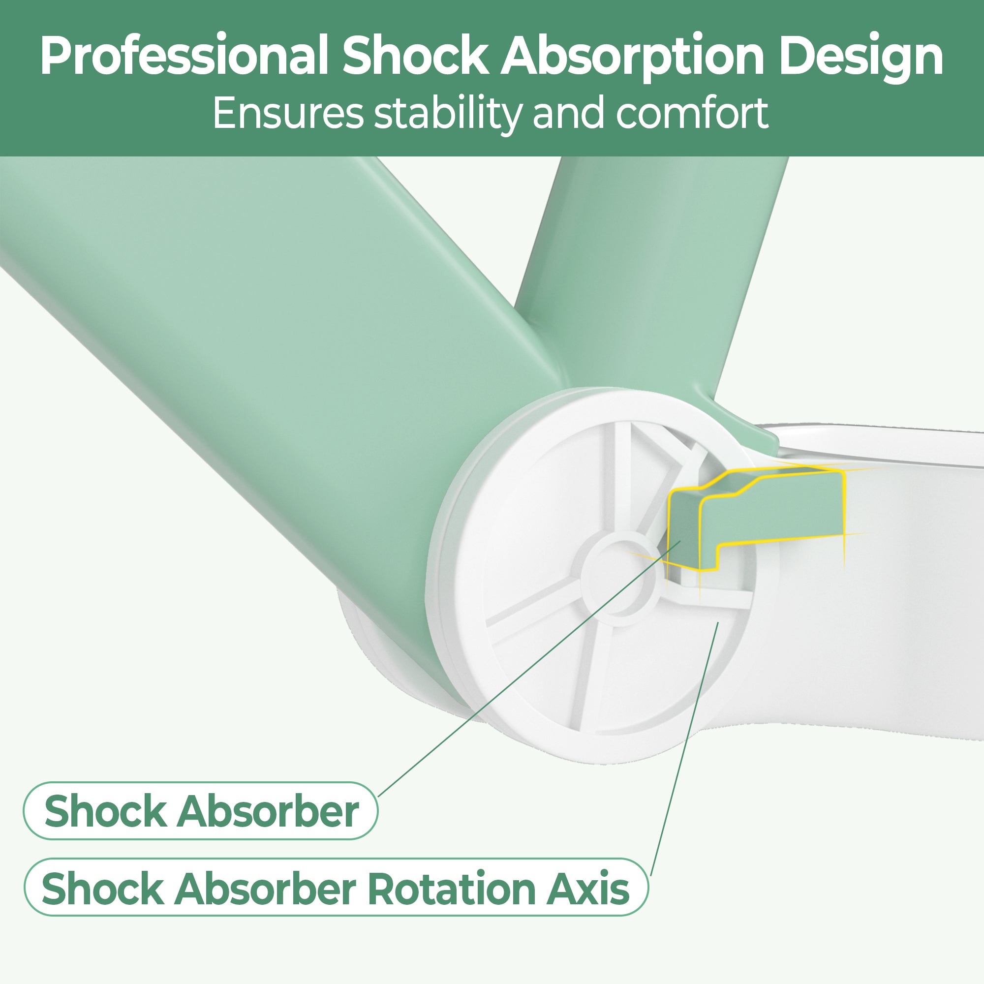 The shock-absorbing structure in the bike's bearing section provides enhanced stability and smoother rides.