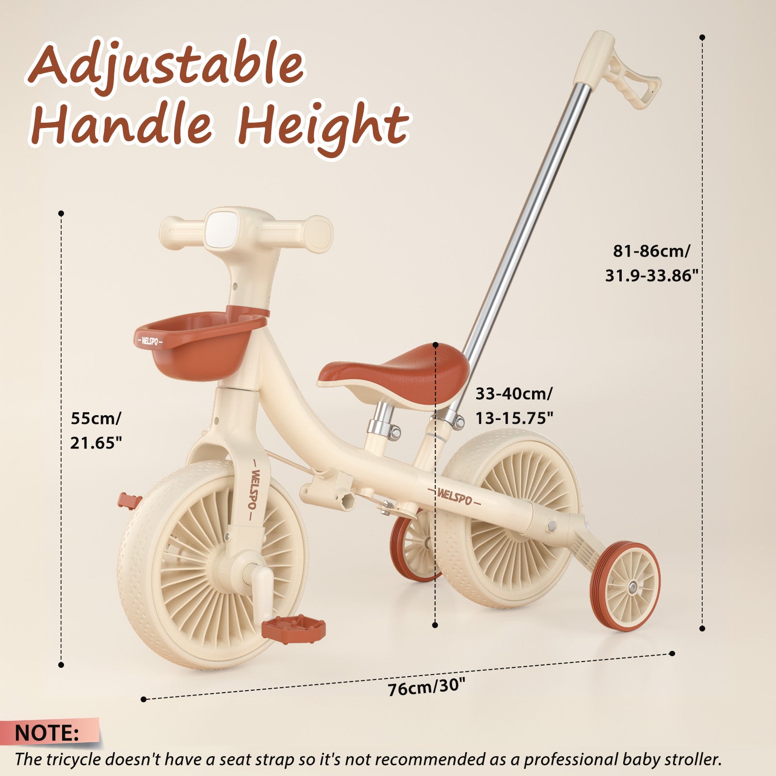 【Removable Push Handle】Equipped with an adjustable push handle, parents can assist toddlers while keeping a comfortable posture. When children are ready for independent riding, the handle can be removed for a true balance bike experience.
