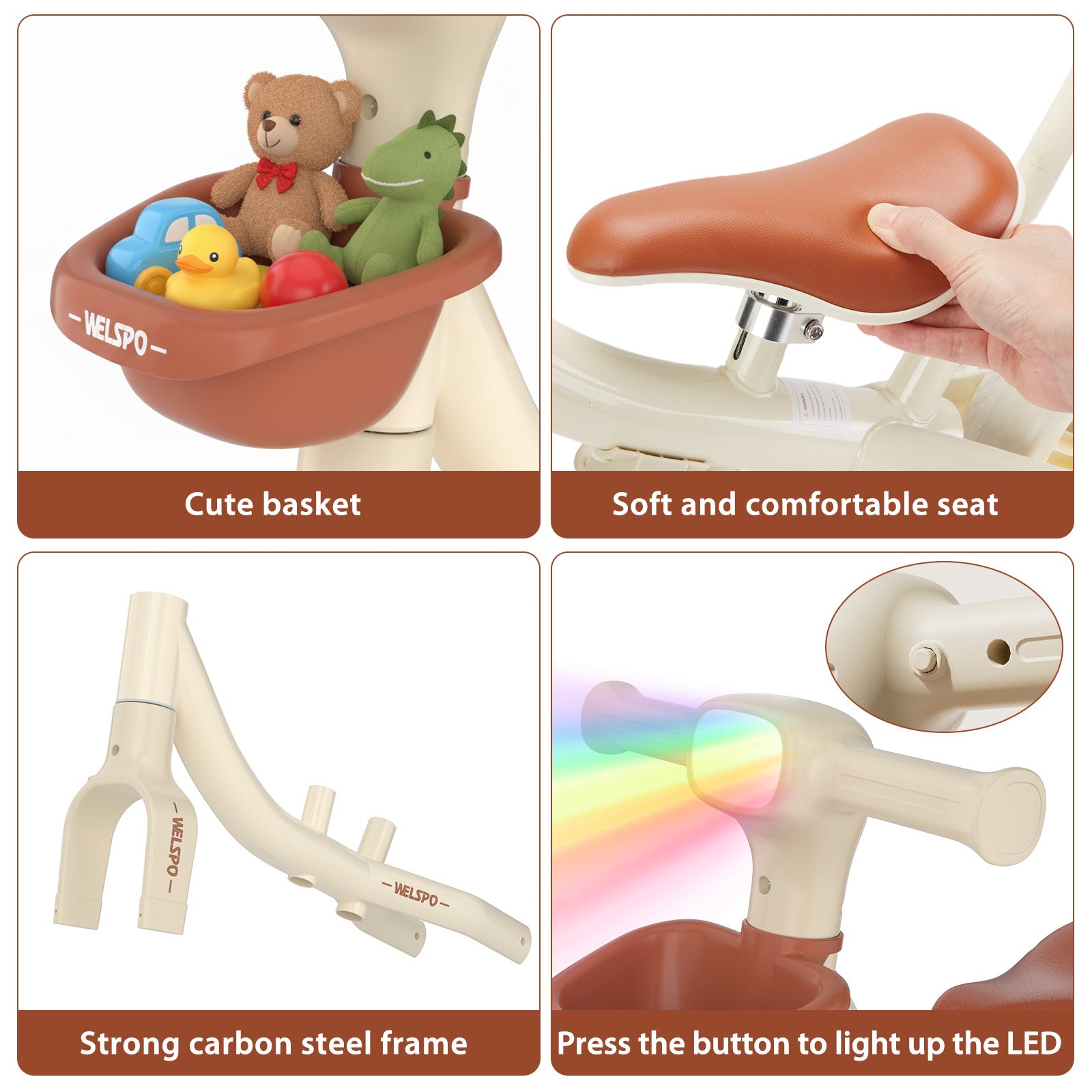 【Safe & Stable Riding Experience】Crafted with a durable carbon steel frame and equipped with widened non-slip wheels, this balance bike ensures safety on indoor and outdoor surfaces. It’s a reliable option for toddlers practicing balance and coordination.