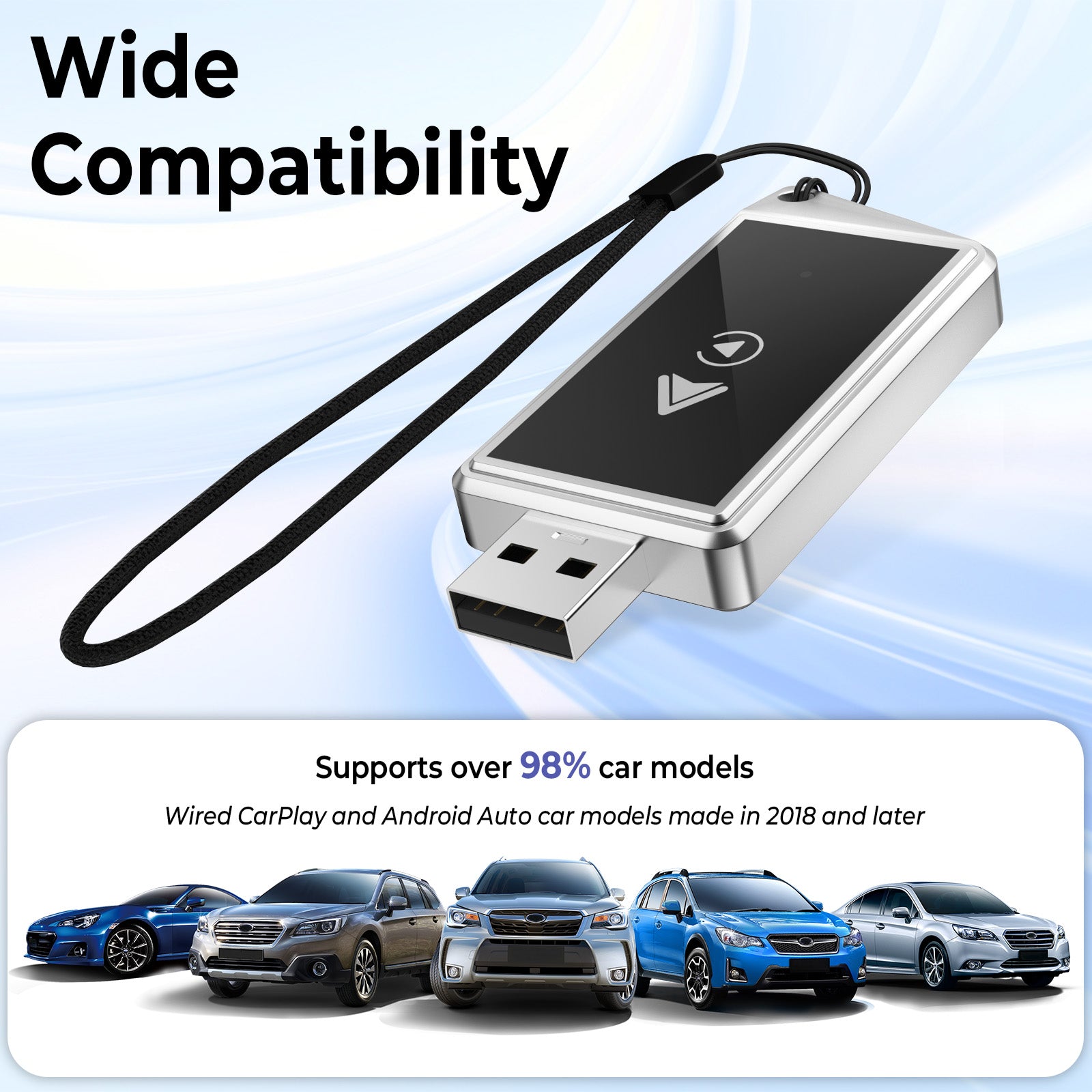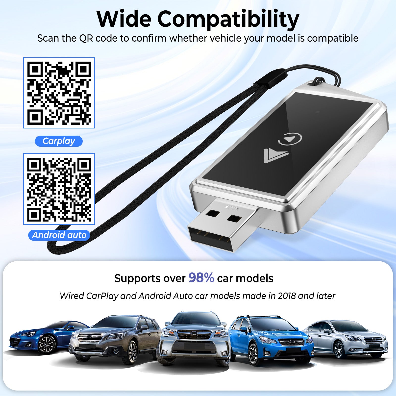 【Wide Compatibility】Supports iOS 10+ and Android 11+ smartphones. Works with cars (2018 or newer) that already have wired CarPlay or Android Auto, ensuring broad adaptability for most mainstream models.